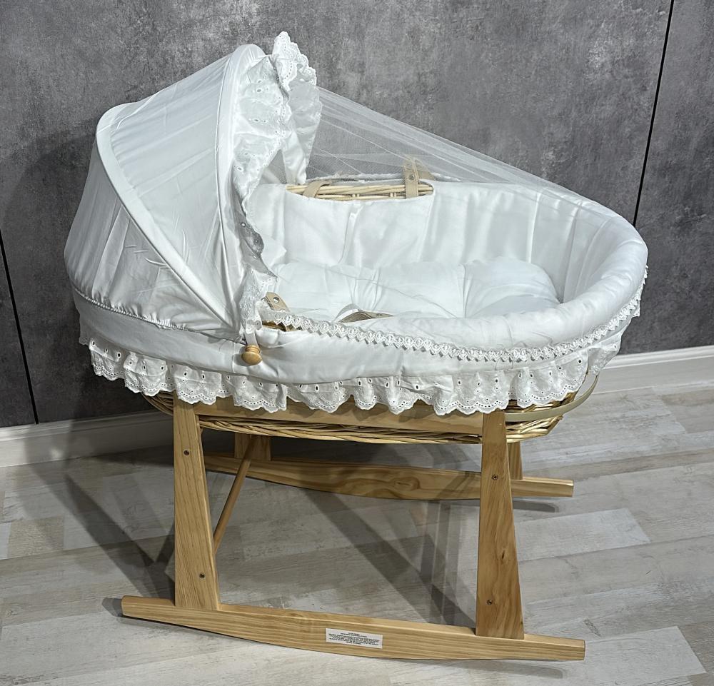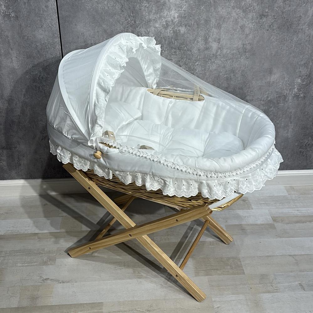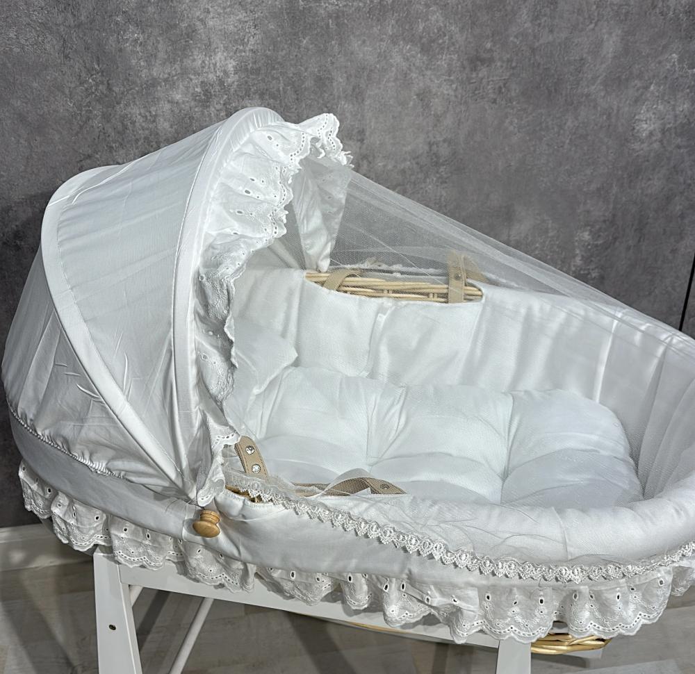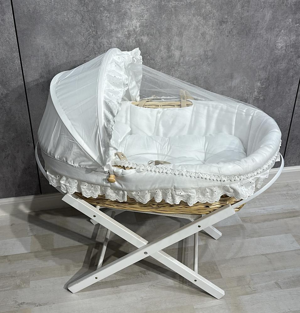 مصنوعة من خوص طبيعي عالي الجودة ومبطنة بقماش ناعم وآمن على بشرة الطفل لتمنحه نومًا مريحًا وآمنًا.