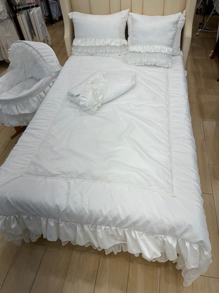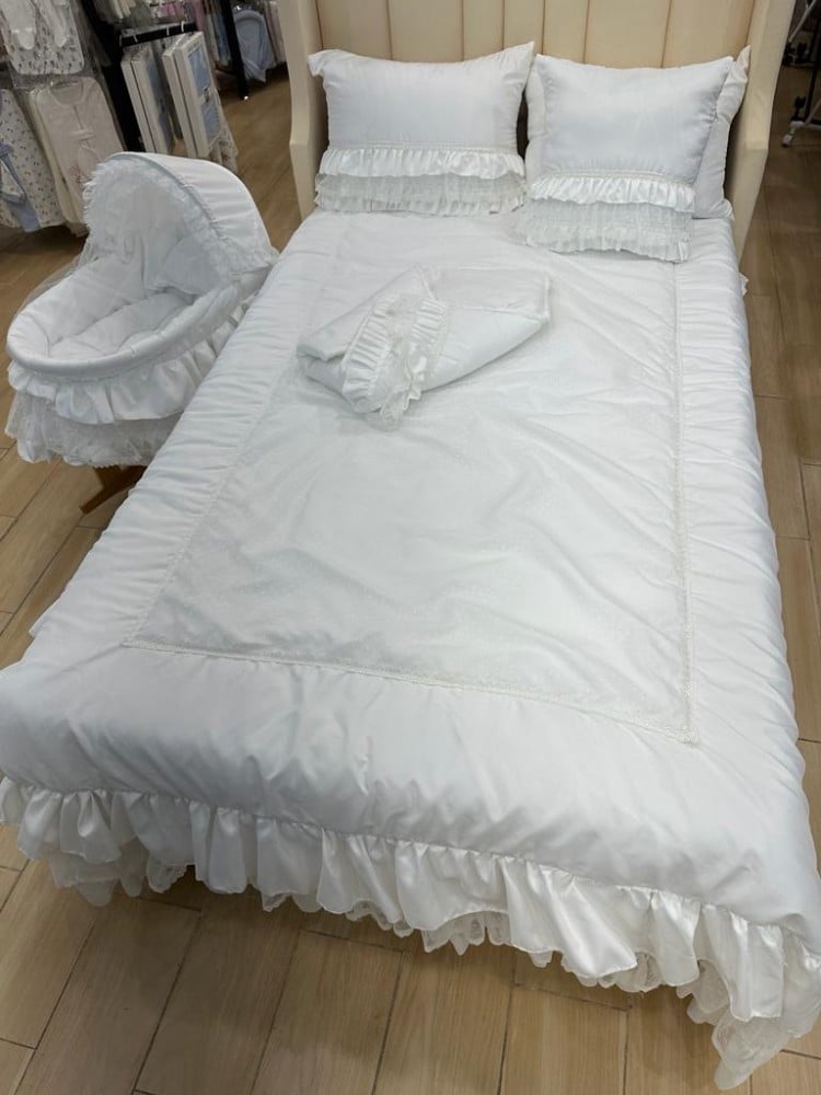 طقم مفرش مواليد + سرير الطفل شامل القاعده الخشبيه مع هزاز