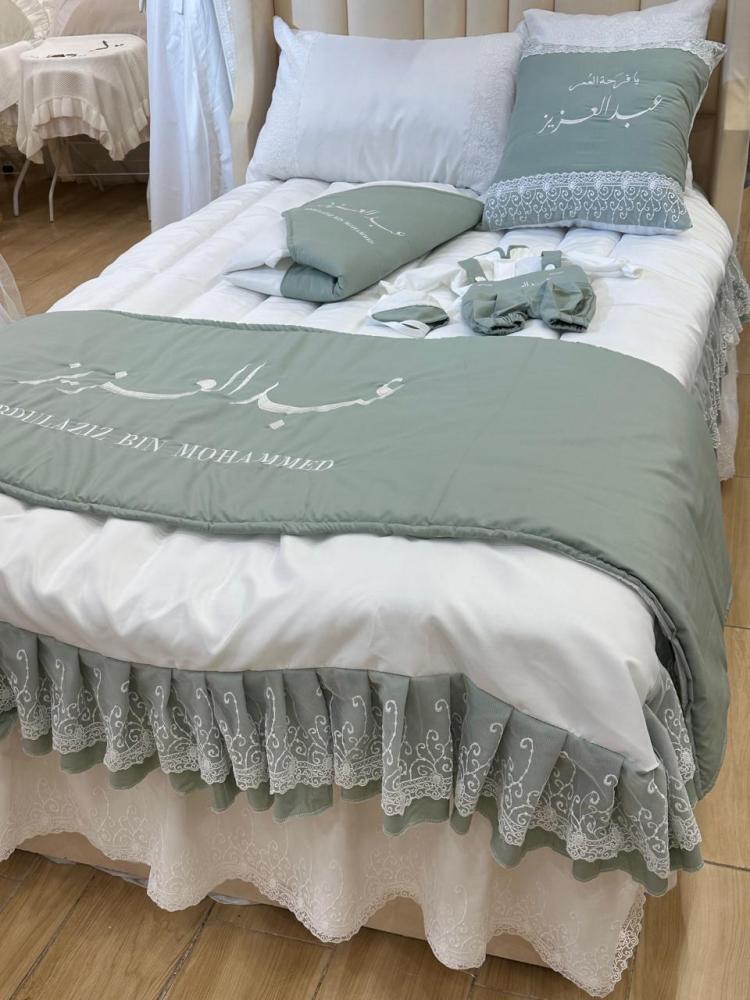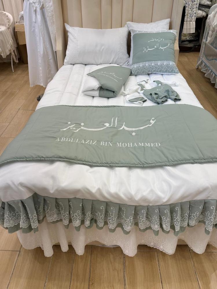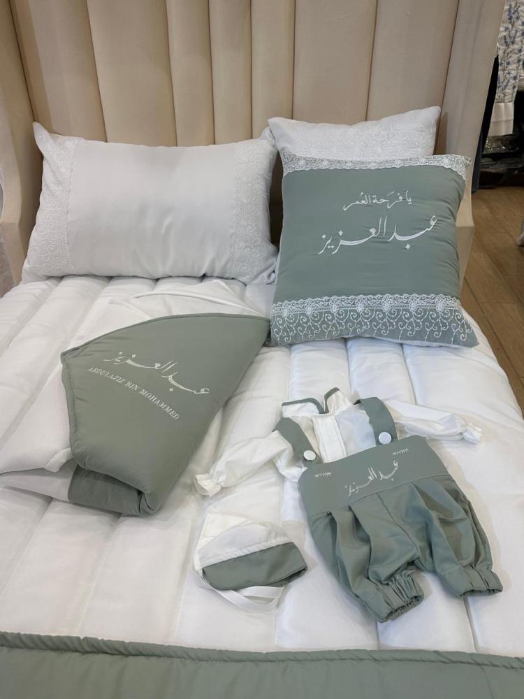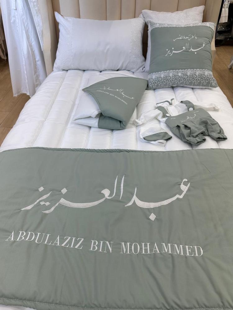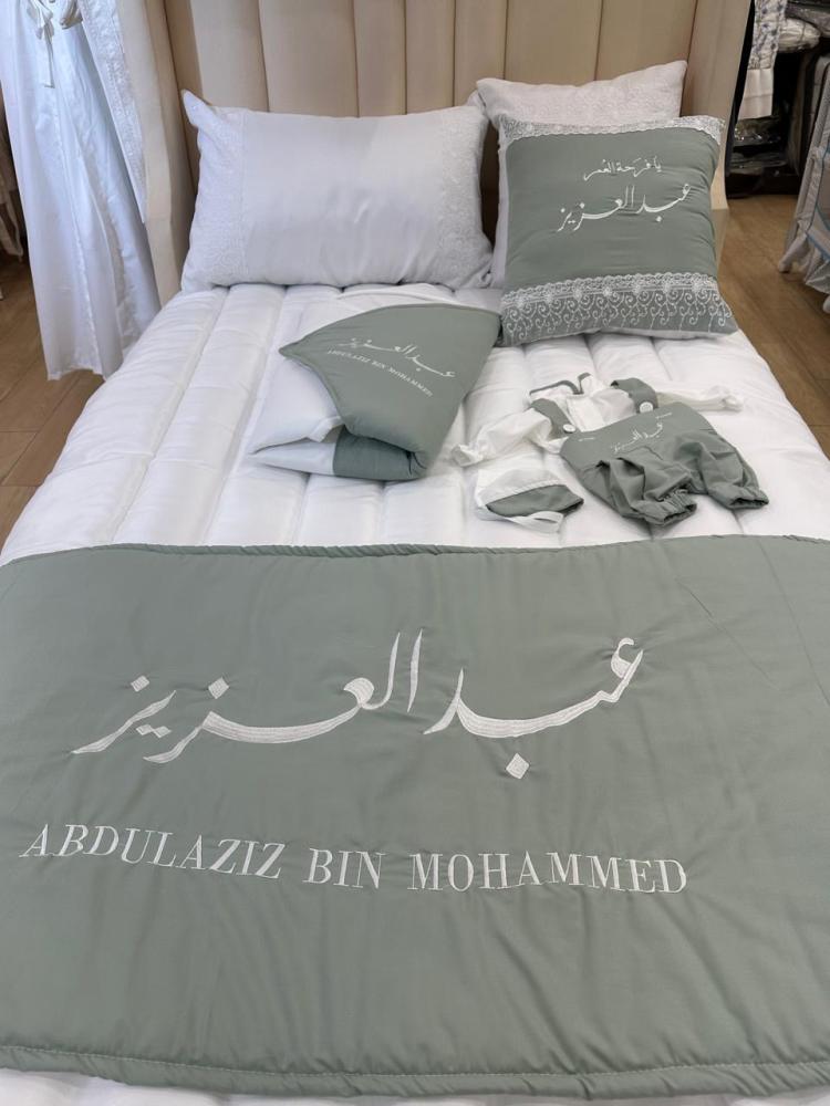 طقم مفرش نفاس مع تطريز الاسم حسب الطلب