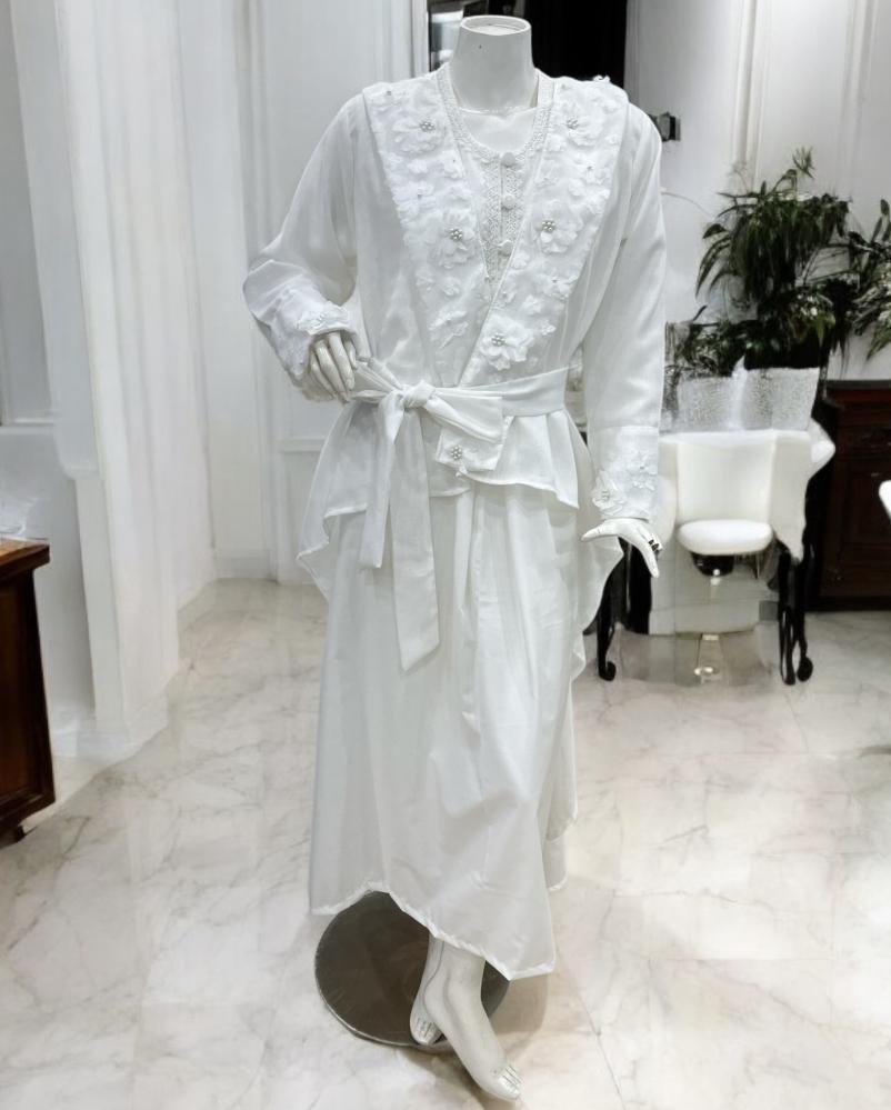 تميزي بإطلالة راقية مع “قميص استقبال لمسة الفخامة” المصمم بعناية ليجمع بين الراحة والجمال. يتميز بتصميم مزدوج يتناسب مع جميع الأذواق، حيث أن الطبقة الداخلية مصنوعة من قطن ناعم ومريح، بينما الطبقة الخارجية تأتي بخامة اللينن الفاخرة التي تضيف لمسة من الأناقة. يزين القميص تطريز بالورود وحبات اللؤلؤ، مما يجعله الخيار الأمثل للأمهات الجدد في أجمل لحظات حياتهن.