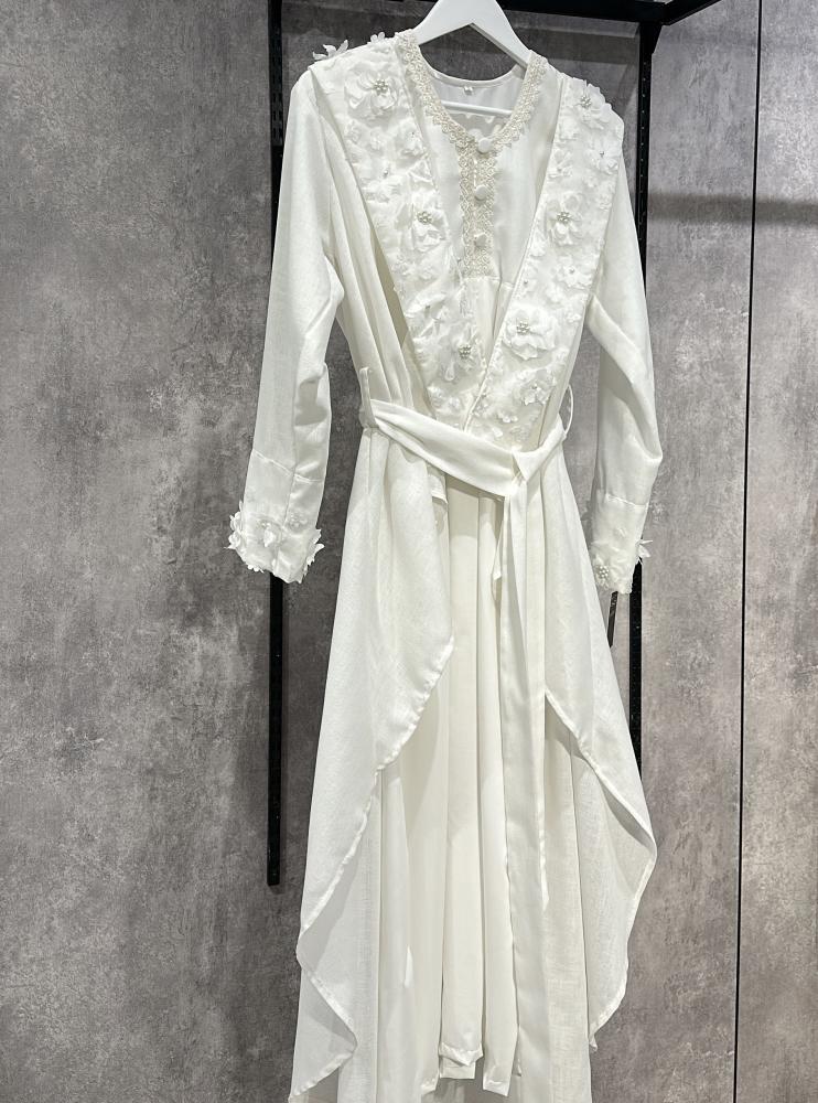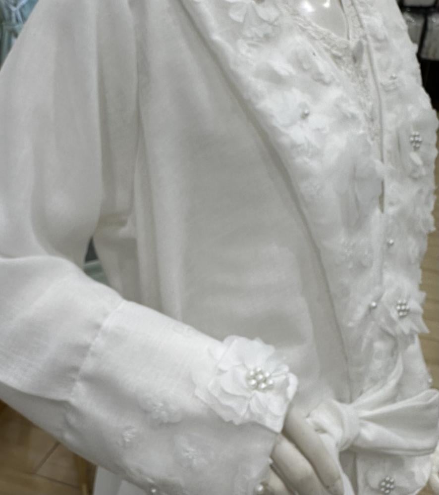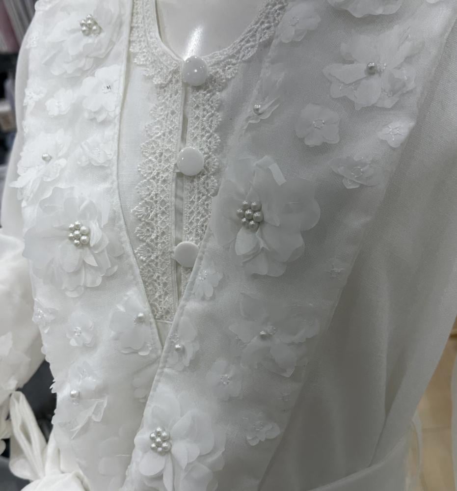 • تطريز فاخر بالورود وحبات اللؤلؤ.