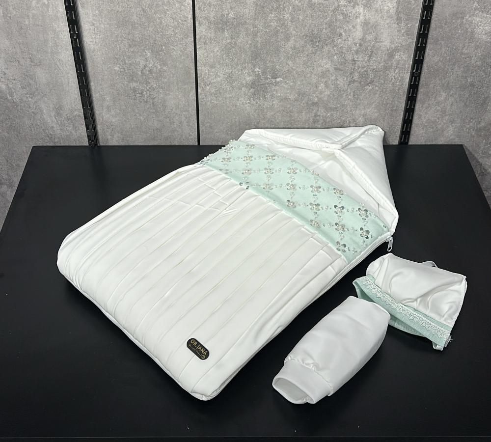 الخامة ناعمة وآمنة على بشرة الطفل، والتصميم راقٍ وفاخر يناسب أجمل لحظات الاستقبال.